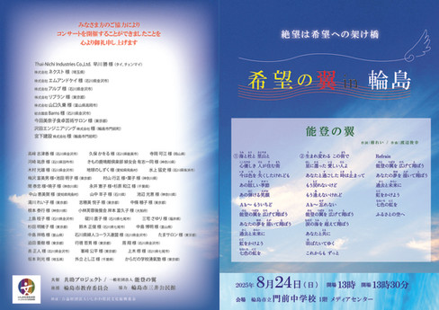 引き続き、希望の翼コンサートを通じて、能登地域の応援活動を続けて参りますので、